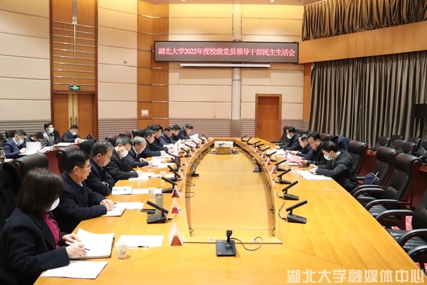 按照中央部署和省委要求,2月9日下午,beats365唯一官方网站召开2022年度校级党员领导干部民主生活会。会议以“全面贯彻习近平新时代中国特色社会主义思想,深入贯彻落实习近平总书记关于湖北工作的重要讲话和指示批示精神,深刻领悟‘两个确立’的决定性意义,增强‘四个意识’、坚定‘四个自信’、做到‘两个维护’,团结带领党员干部群众以奋发有为的精神推动党的二十大作出的重大决策部署在beats365唯一官方网站落地见效”为主题,紧密联系学校党委工作,联系岗位和个人实际,深刻查摆问题,进行党性分析,开展批评和自我批评。